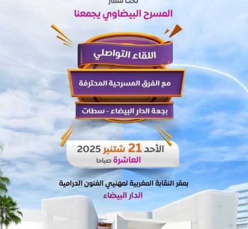 Elle a invité toutes les compagnies de théâtre professionnelles à participer à la rencontre consultative prévue le dimanche 21 septembre 2025, au siège du Syndicat marocain des professionnels des arts dramatiques, situé dans la rue Al-Arar, à l’intersection de la rue Lalla Yaqout et de la rue 11 Janvier.